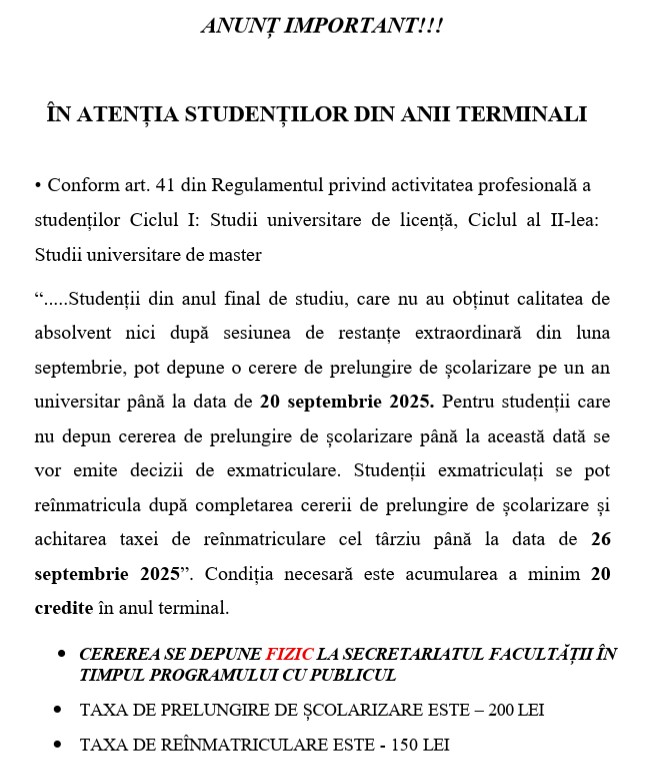EXAMEN DE DISERTAȚIE – IULIE 2026